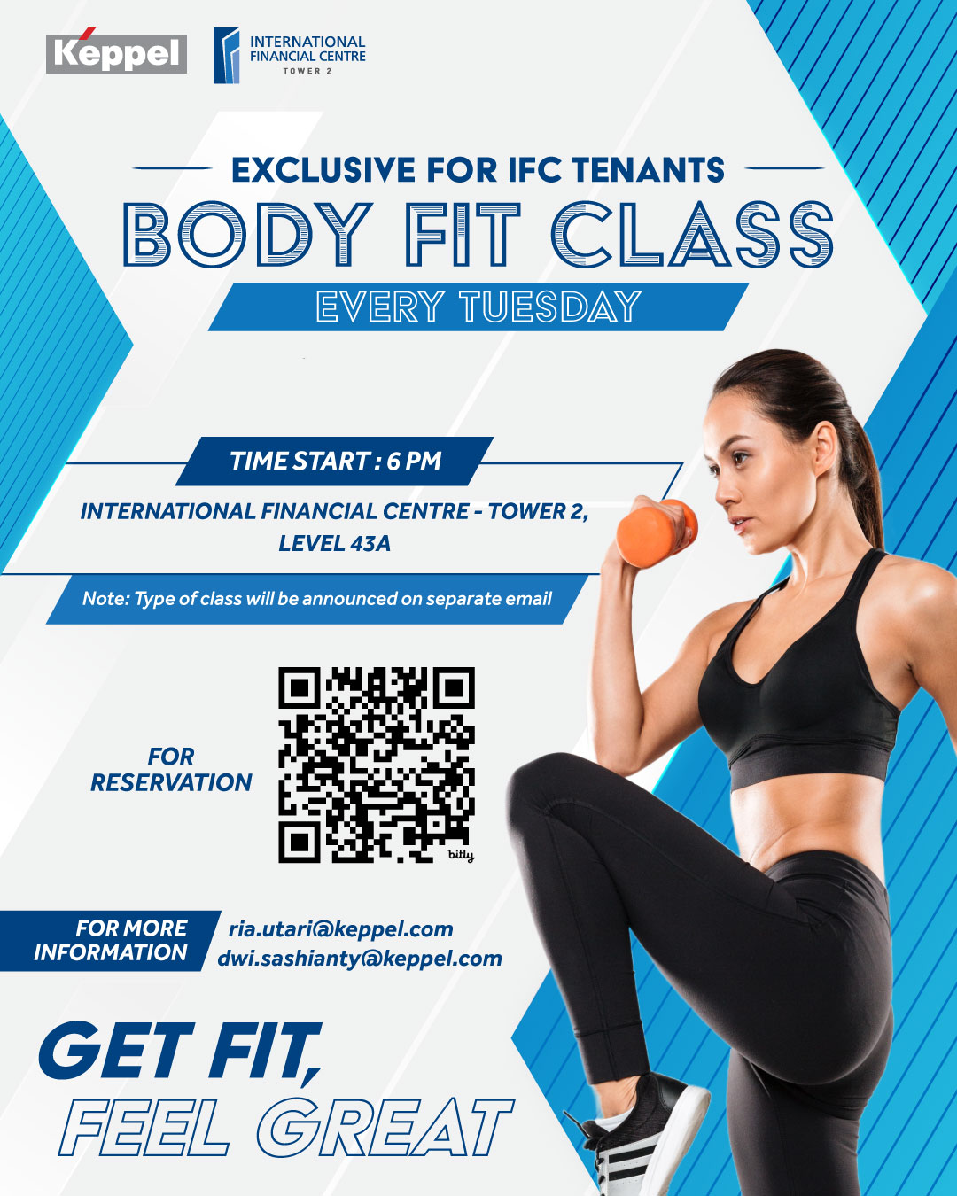 We are inviting you to join the FREE Body Fit Class (Type for this week Mat Pilates):