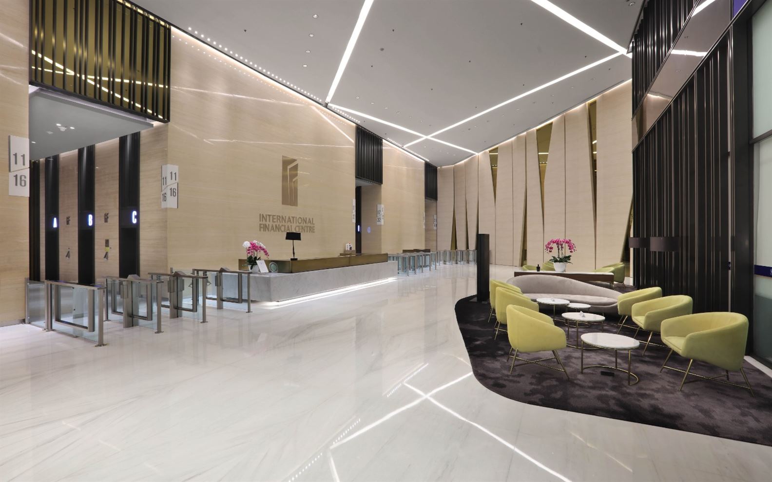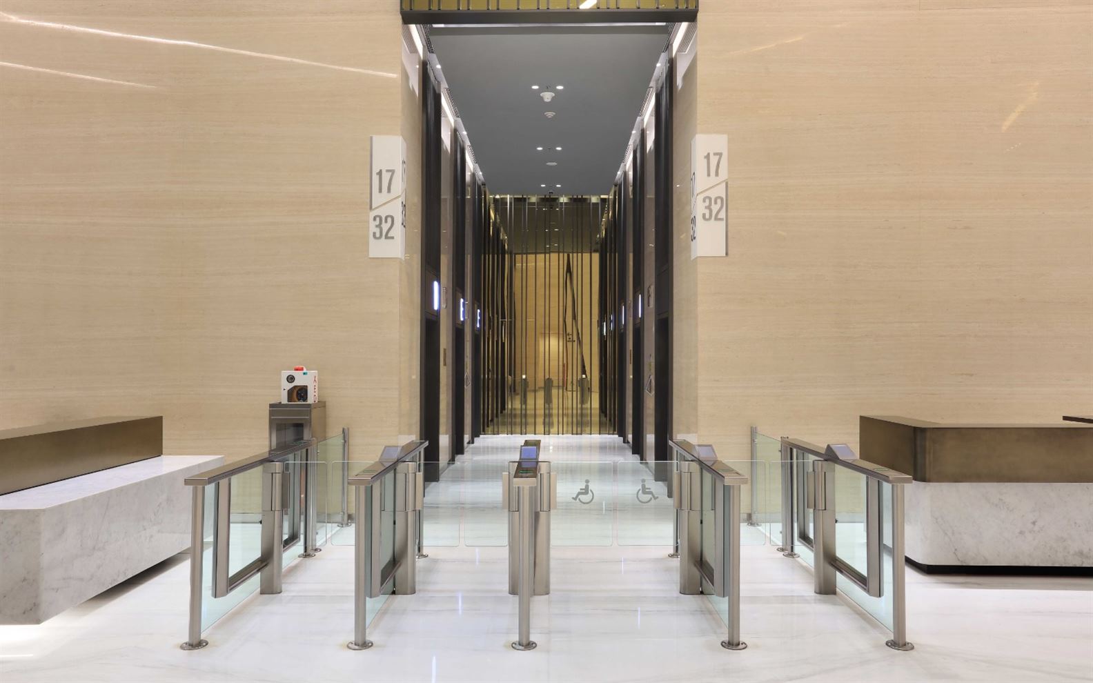 | Sistem Keamanan | Kartu akses, CCTV, pemilihan tujuan, kontrol onlift, logam dan berjalan melalui detektor dan mesin pendeteksi sinar-x |